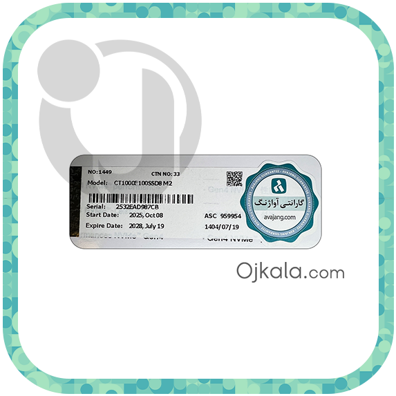 نظرات مشتریان در مورد هارد SSD لپ تاپ 1TB ترابایت کروشیال M2 NVME 2280 GEN4 E100 گارانتی آواژنگ